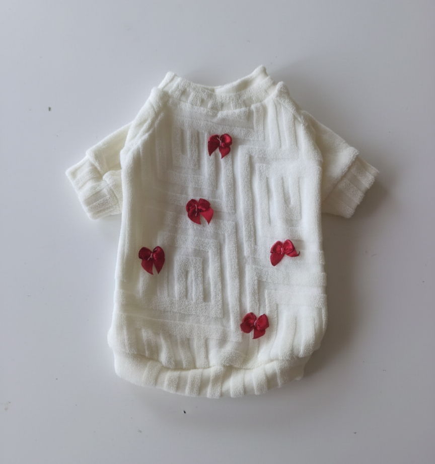 Kırmızı Süslü Kurdelalı kedi köpek kıyafeti Tişört, stil sahibi kedi ve köpekler için modern ve güçlü bir tasarım anlayışıyla üretilmiştir. Yumuşak dokulu ve esnek kumaşı sayesinde evcil hayvanınızın vücuduna rahatça uyum sağlar, gün boyu konforlu bir kullanım sunar. Nefes alabilen yapısı sayesinde hareket özgürlüğünü destekler.